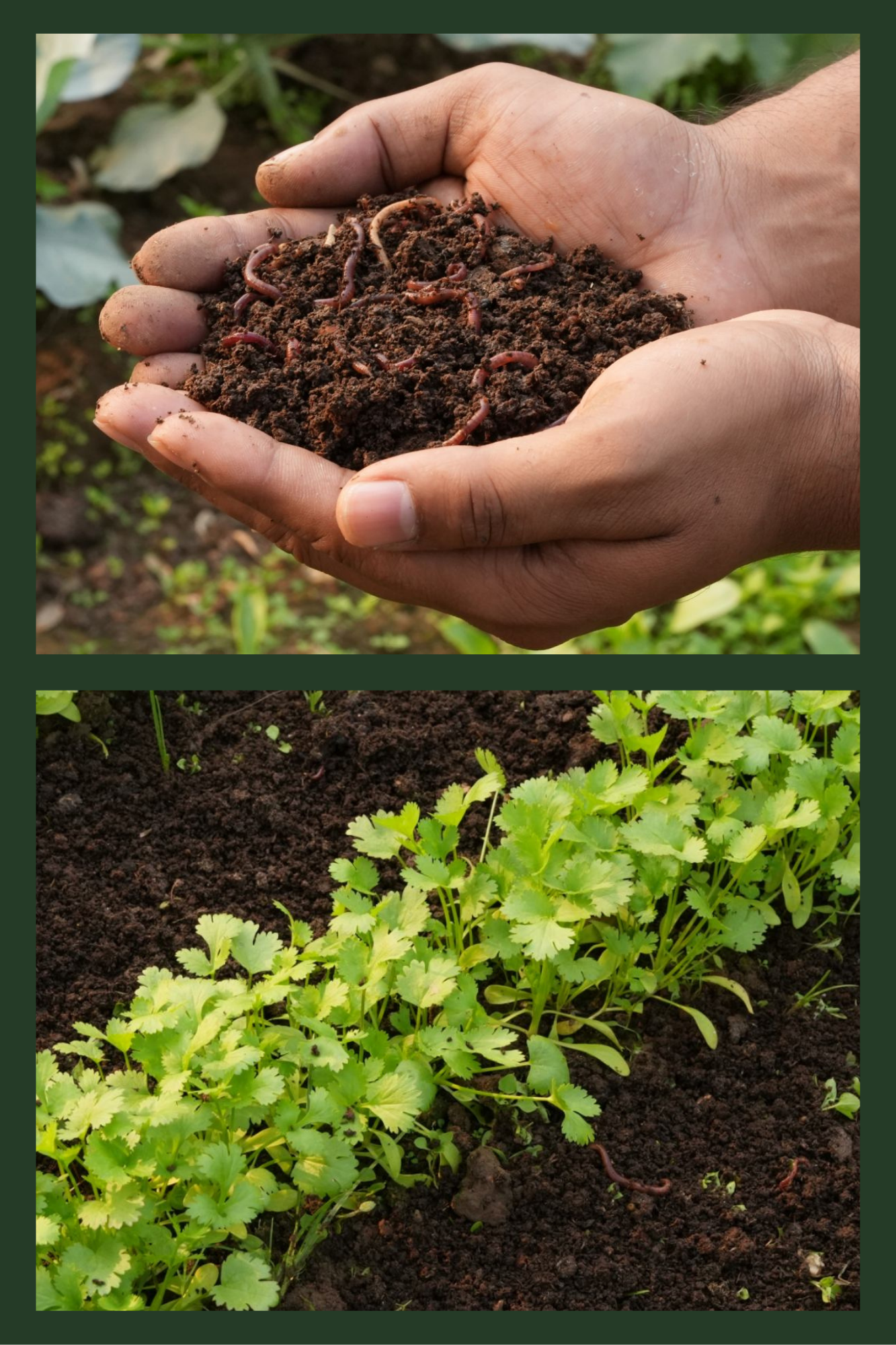 Healthy soil, enriched in organic matter and beneficial microorganisms.